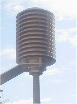 Detalle de cobertizo de los sensores de temperatura y humedad en una estación automática.